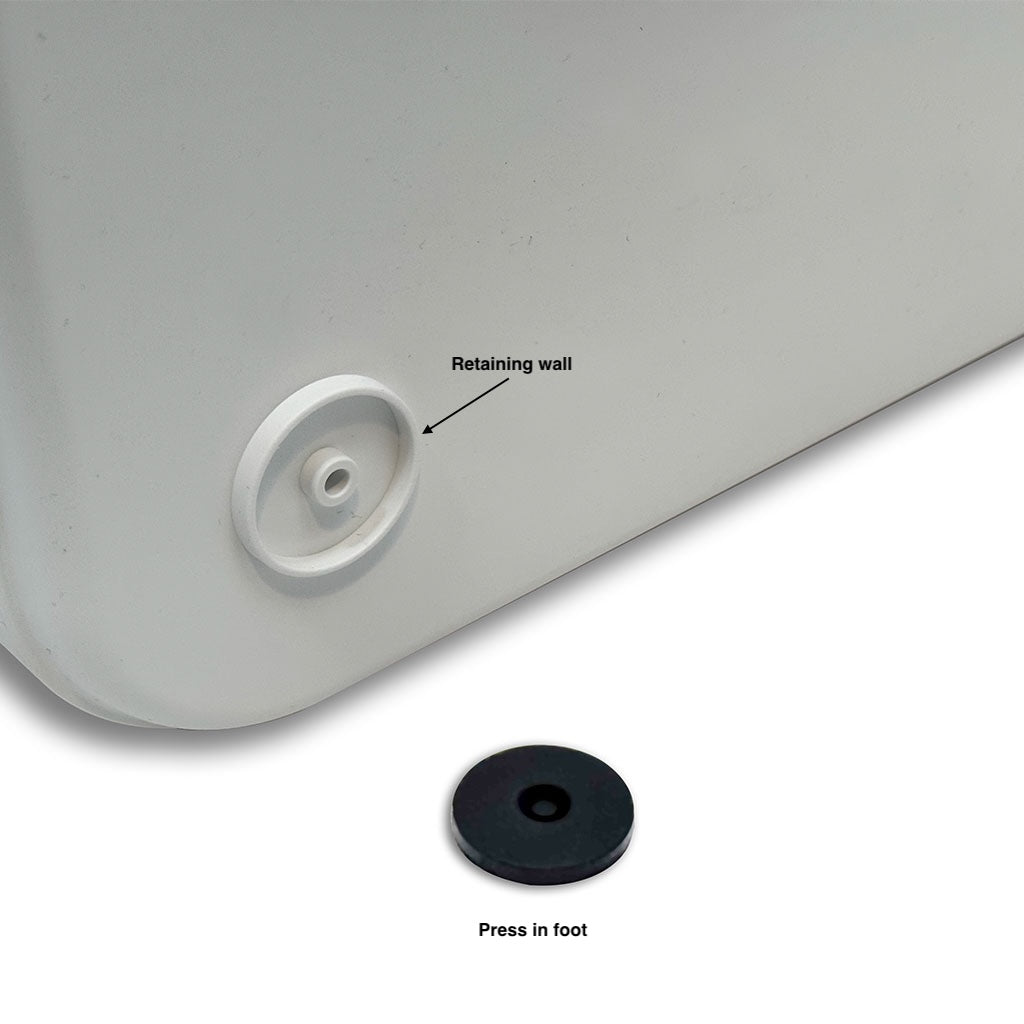 NOTE: Be sure to get the right feet. For assistance in determining the right feet, contact customer support with a sharp photo of the underside of your Modkat, Modkat XL + Modkat Tray.