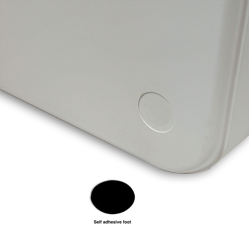 Position each foot into one of four circular niches on the underside of your Modkat, Modkat XL + Modkat Tray.