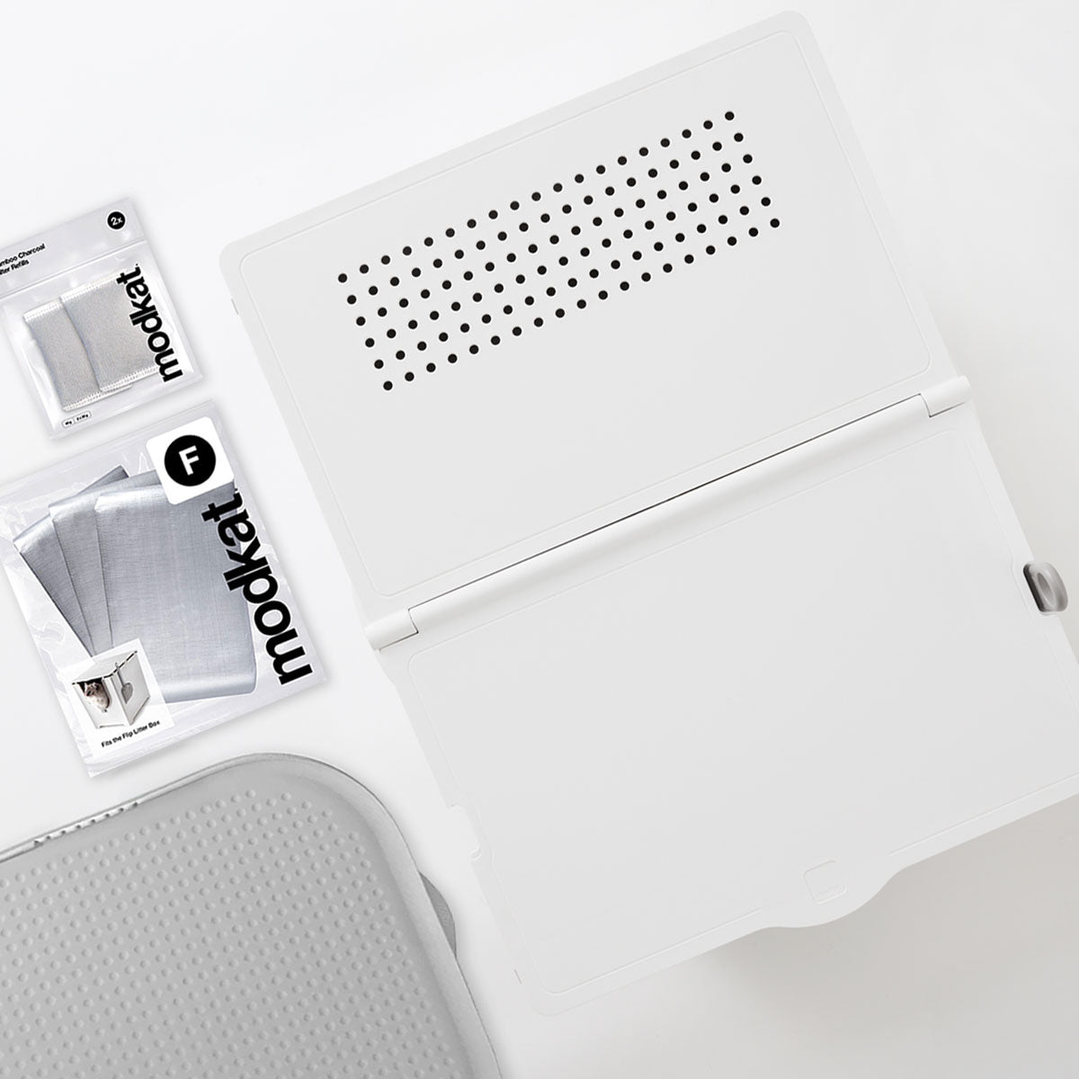 All Modkat litter boxes are designed with ease of cleaning in mind. Their seamless construction and reusable liners help reduce mess, making clean-up quick and straightforward. Additionally, Modkat boxes support effective odor control, helping to keep your home fresh with minimal effort. Whether it’s maintaining cleanliness or managing odors, every Modkat litter box ensures a more convenient and hygienic experience for both you and your cat.