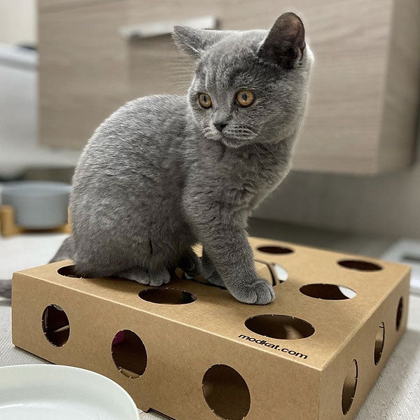 We use as little packaging as possible and as much recycled content as we can muster. And every Modkat litter box includes eco-friendly packaging that transforms into an interactive cat toy. This gives our packaging a second life, and best of all, cats love it!
